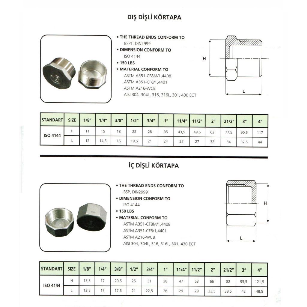 Dış Dişli Kör Tapa
